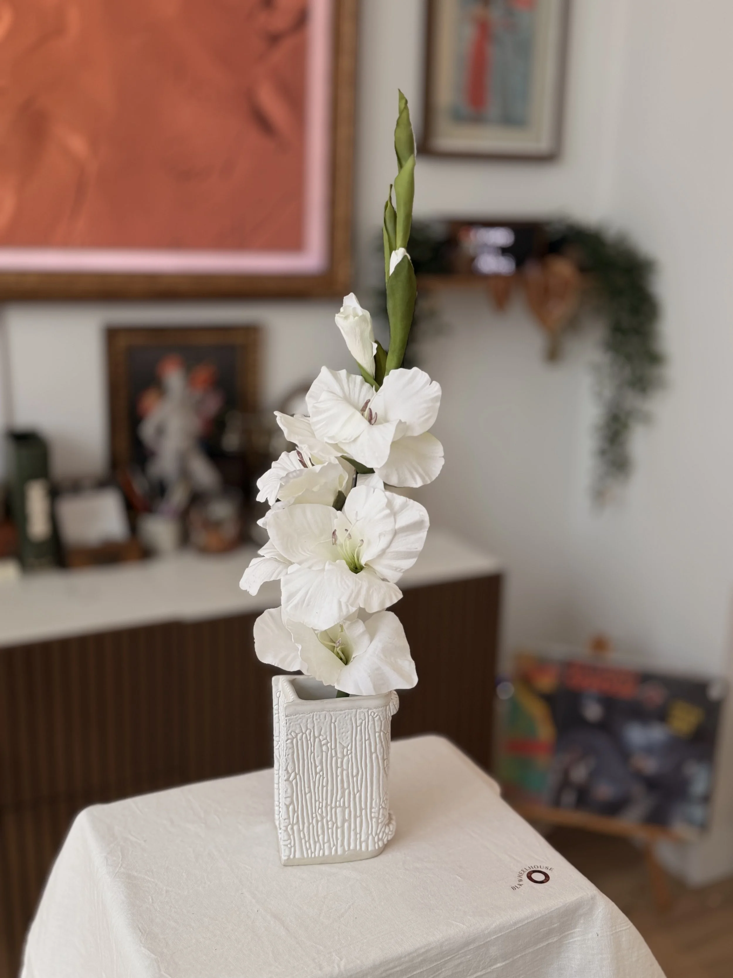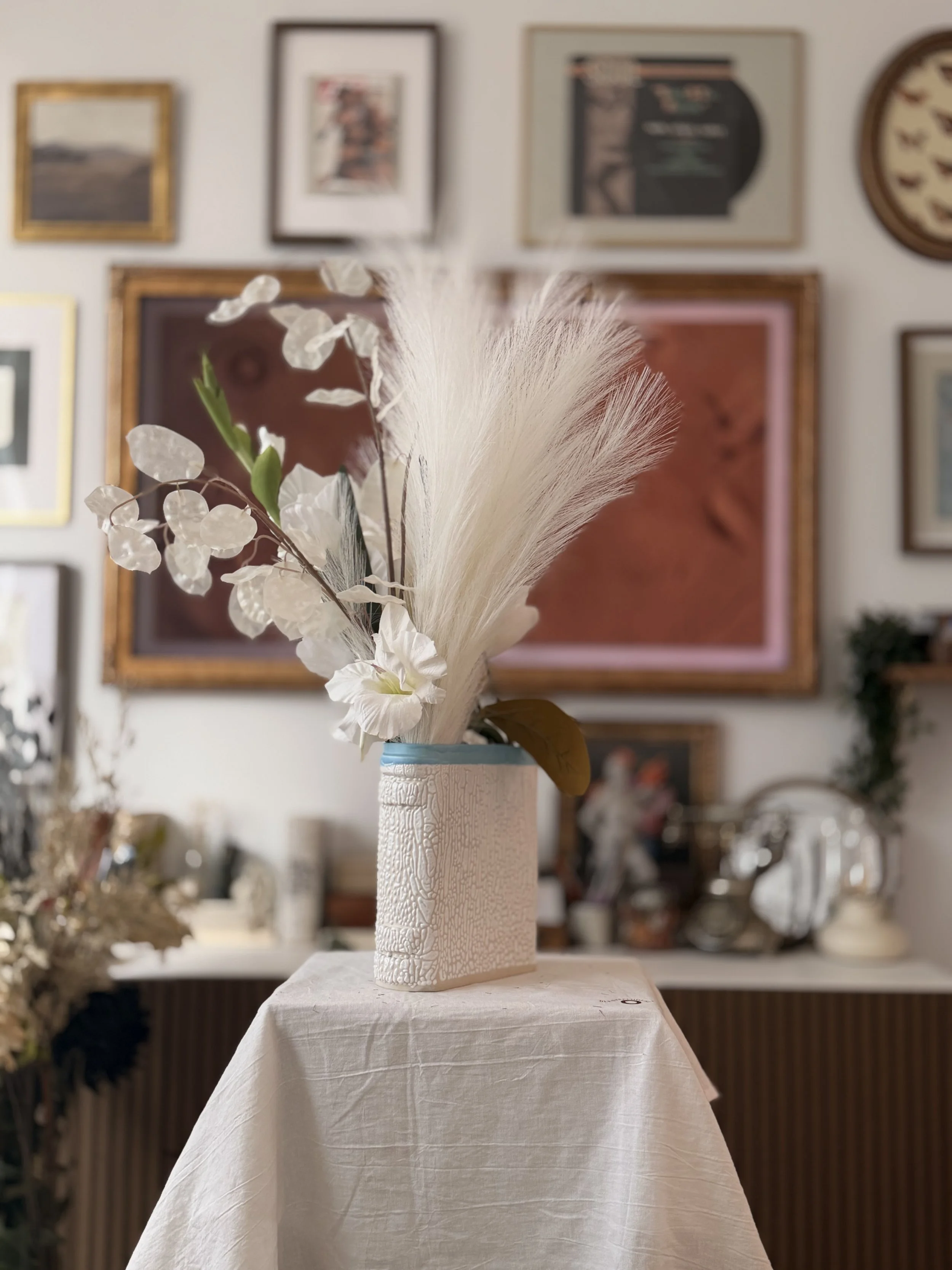 97“ by 5” by 2.5” Milestone Book Vases are available in white stoneware and white glaze. Client consultation required. Timeline 4–6 weeks from confirmation. Each piece is one-of-one.