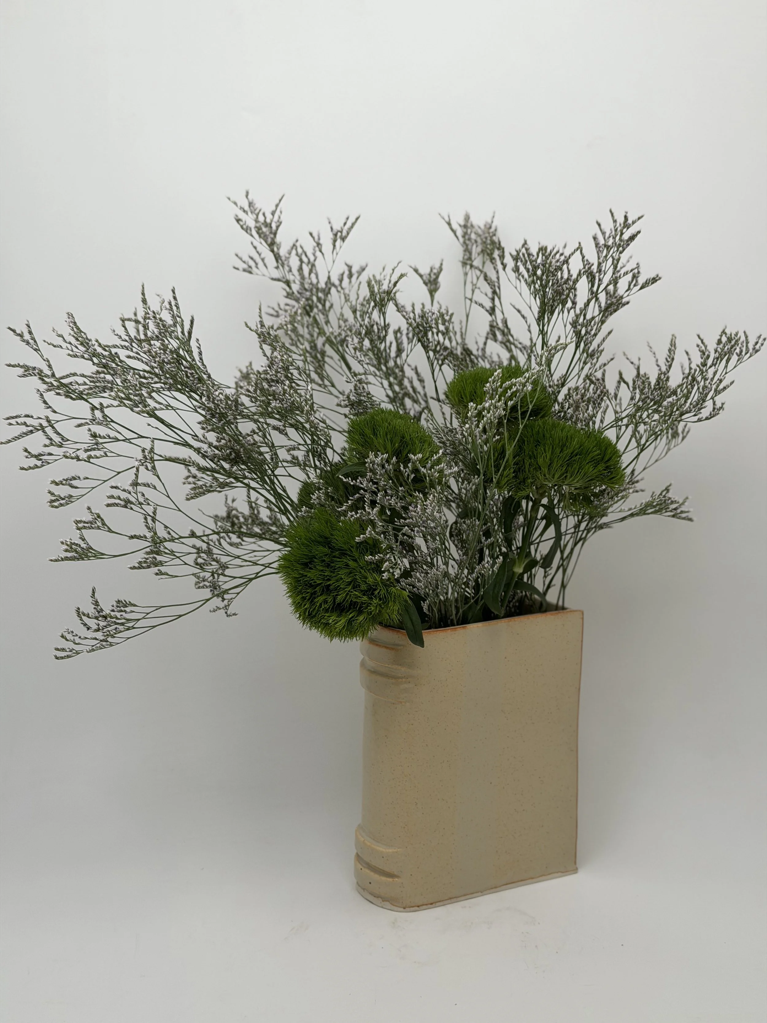 The Ceramic Book Vase is the studio's signature form: a vessel shaped like a hardcover, watertight, and made to be filled. Bring literary elegance and handcrafted soul into your home.