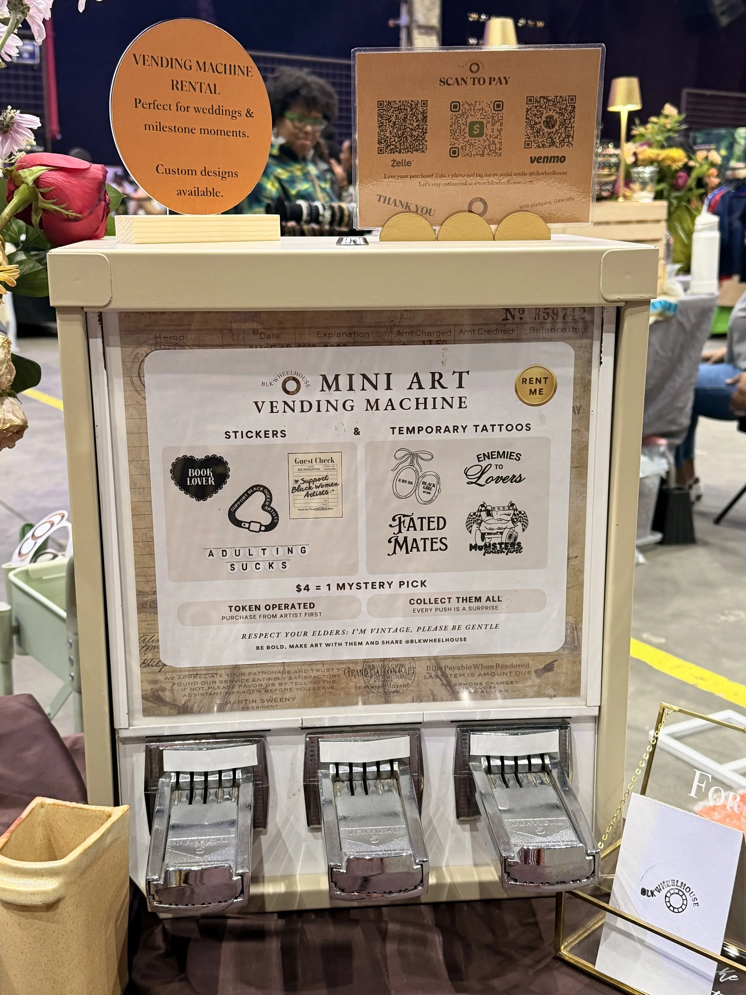 • Private celebrations and milestone eventsThe machine functions as both an interactive art piece and a guest experience, inviting people to take home mini artwork connected to the event.